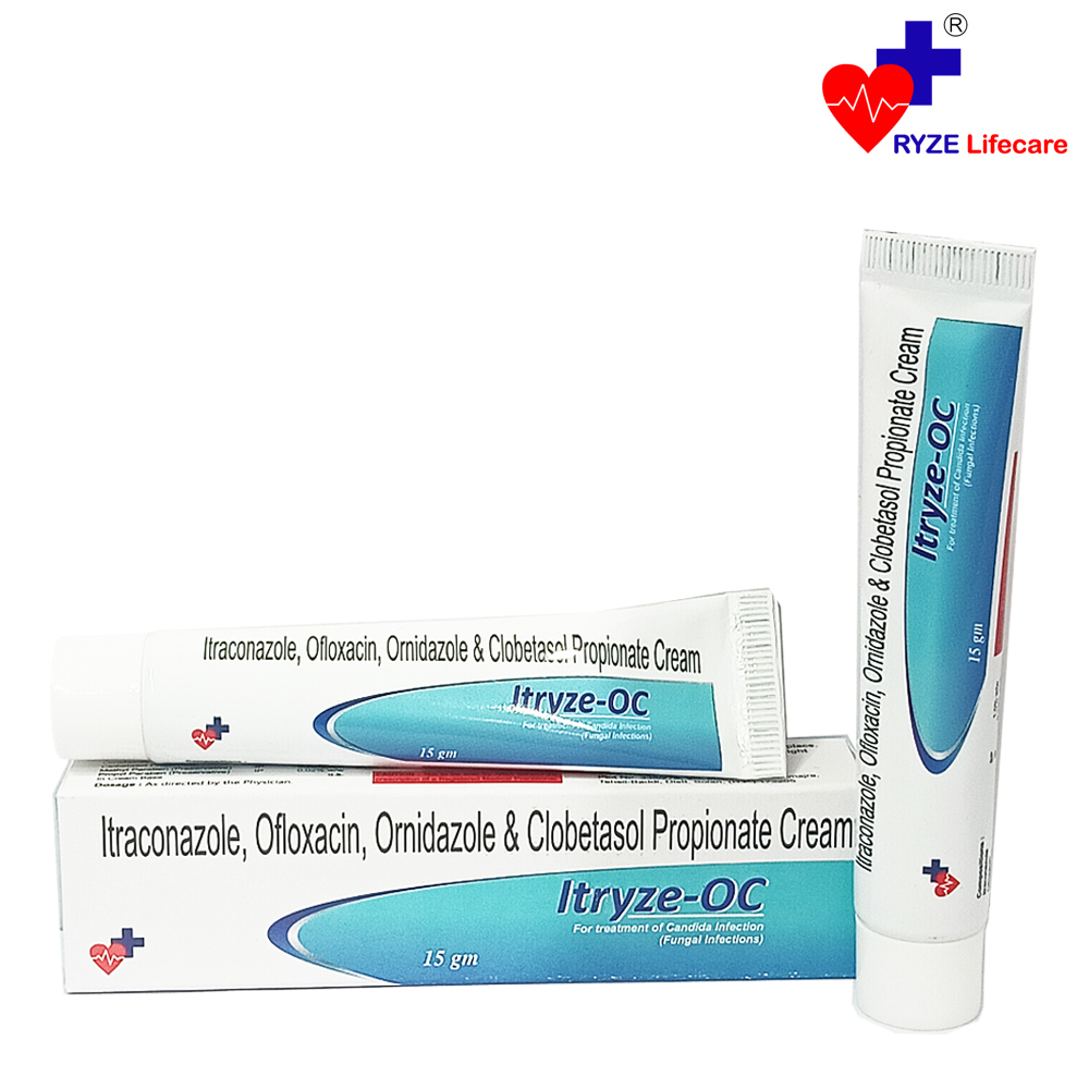 Ofloxacin 0.75% w/w + ornidazole 2% w/w + itraconazole 1% w/w + clobetasole 0.05% w/w